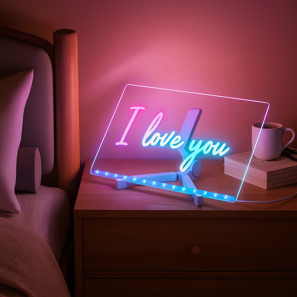 Cada detalle cuenta cuando se trata de sorprender a quien amas. Con nuestra Pizarra Mágica LED, cada noche puede terminar con un mensaje brillante y único que ilumine no solo la habitación, sino también el corazón. No es un simple accesorio: es un gesto poderoso, una forma distinta de decir “te amo” sin palabras. Imagina despertar o ir a dormir con esa luz especial recordándote lo importante que eres para alguien.